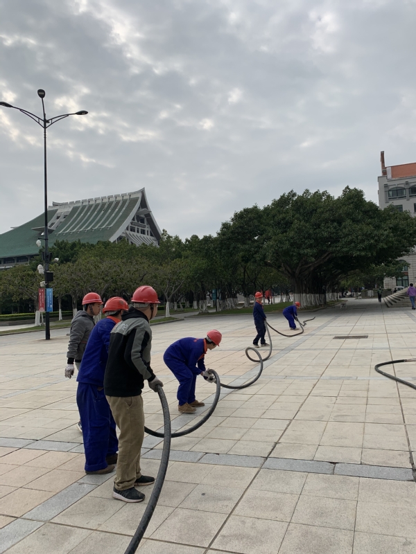 12月25日,因嘉庚广场舞台用电电缆年久老化,中心未雨绸缪提前进行旧电缆更换工作,对旧电缆进行拆除并同时布设新电缆,保障跨年舞会用电安全。