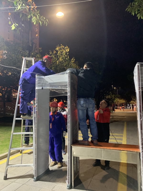 安检门临时电源布设并做好防护设施