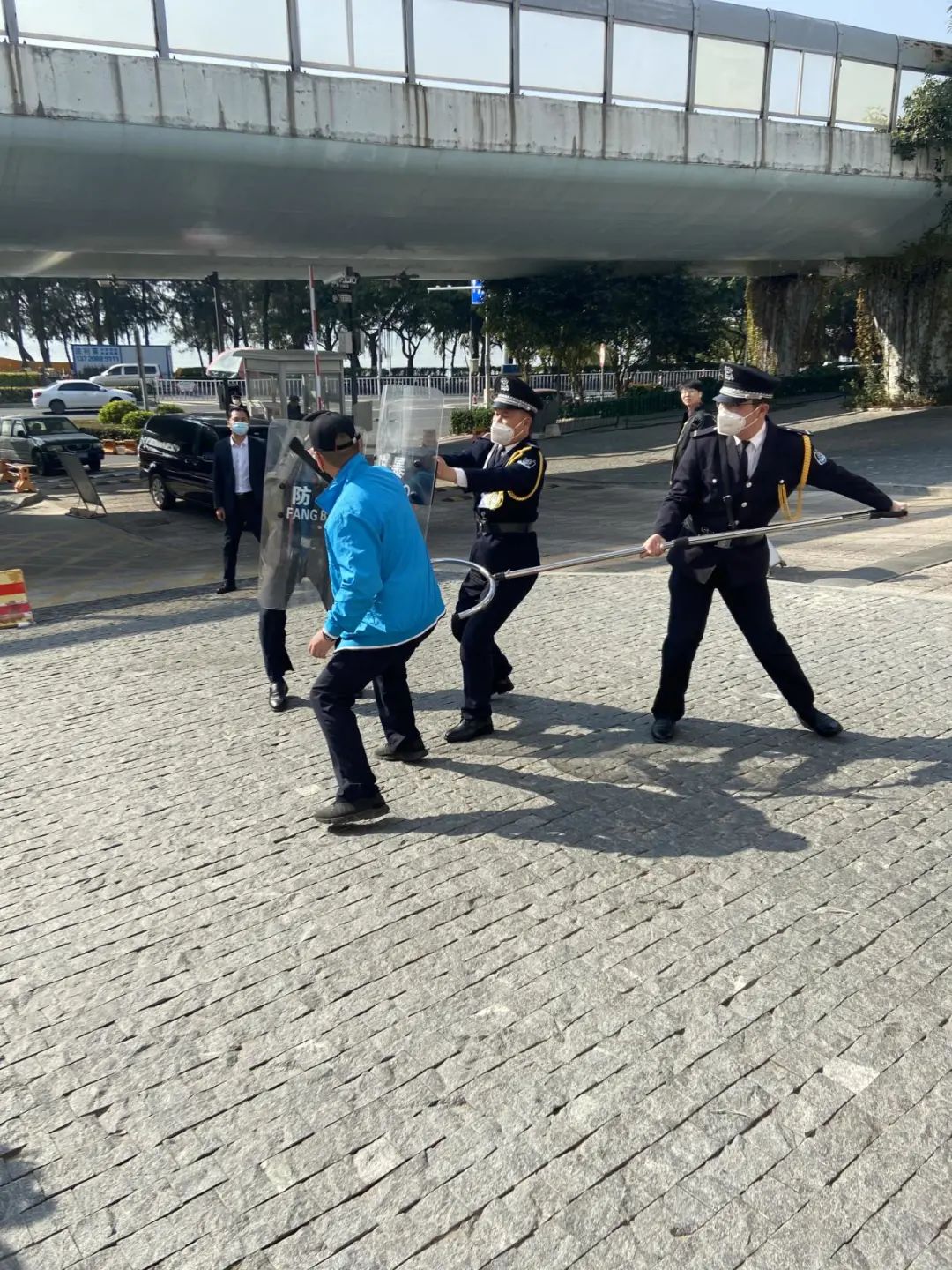 各校门进行防暴恐演练