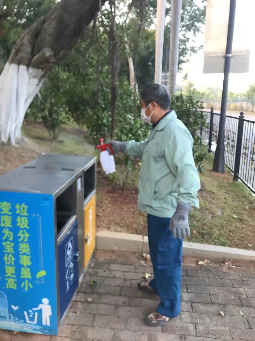 消杀清洁校园公共垃圾桶及公厕