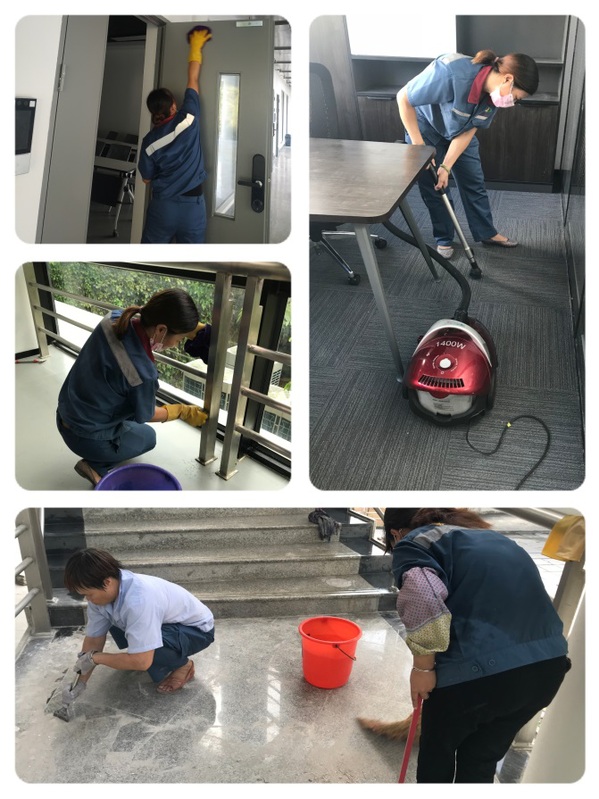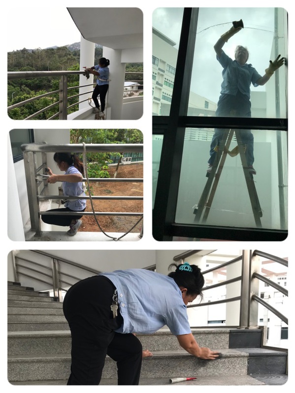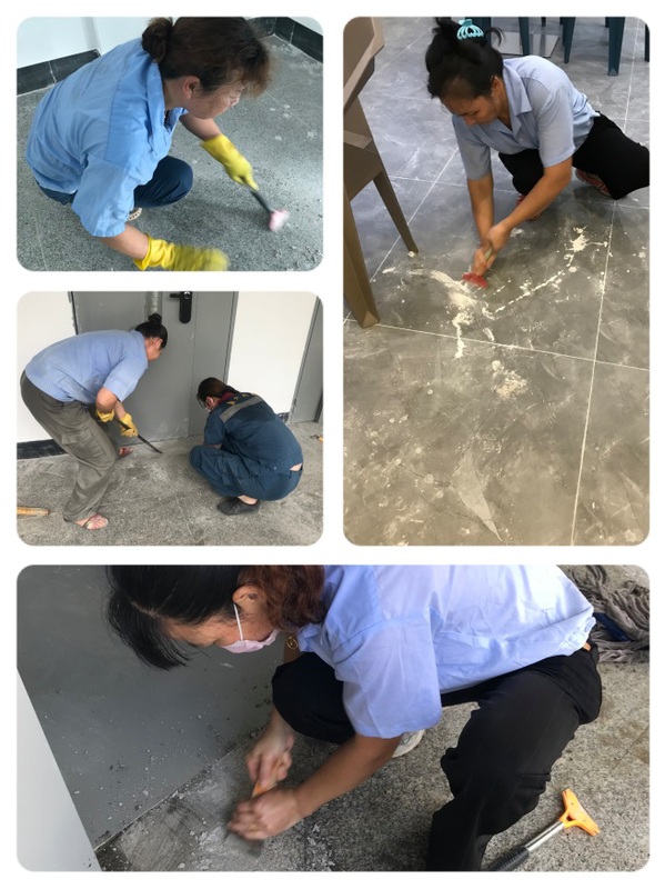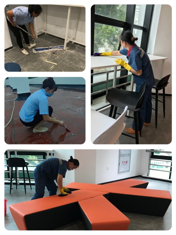 在承接项目前,因装修施工延迟,需要边施工边进行卫生打扫,这给我们的部门保洁工作带来一定的困难。尽管时间紧、任务重,但大家凝心聚力、起早贪黑、埋头苦干,清洁卫生死角,清除垃圾,反复擦洗、精益求精。员工们用实际行动诠释了“爱岗敬业、争创一流、艰苦奋斗、甘于奉献”的后勤服务精神,努力为学院师生创建温馨、舒适的工作、学习环境。
