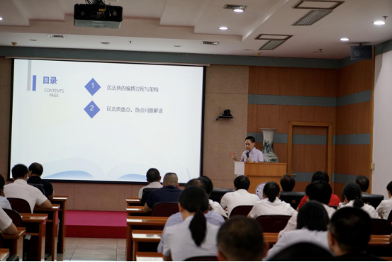 《民法典》将于明年1月1日开始实施,关系到人们生活、工作的方方面面。通过本次讲座,让参训人员对《民法典》内容有所了解,在管理工作中树立法治思维和理念,进一步学好法、用好法,提升依法管理的水平和能力。