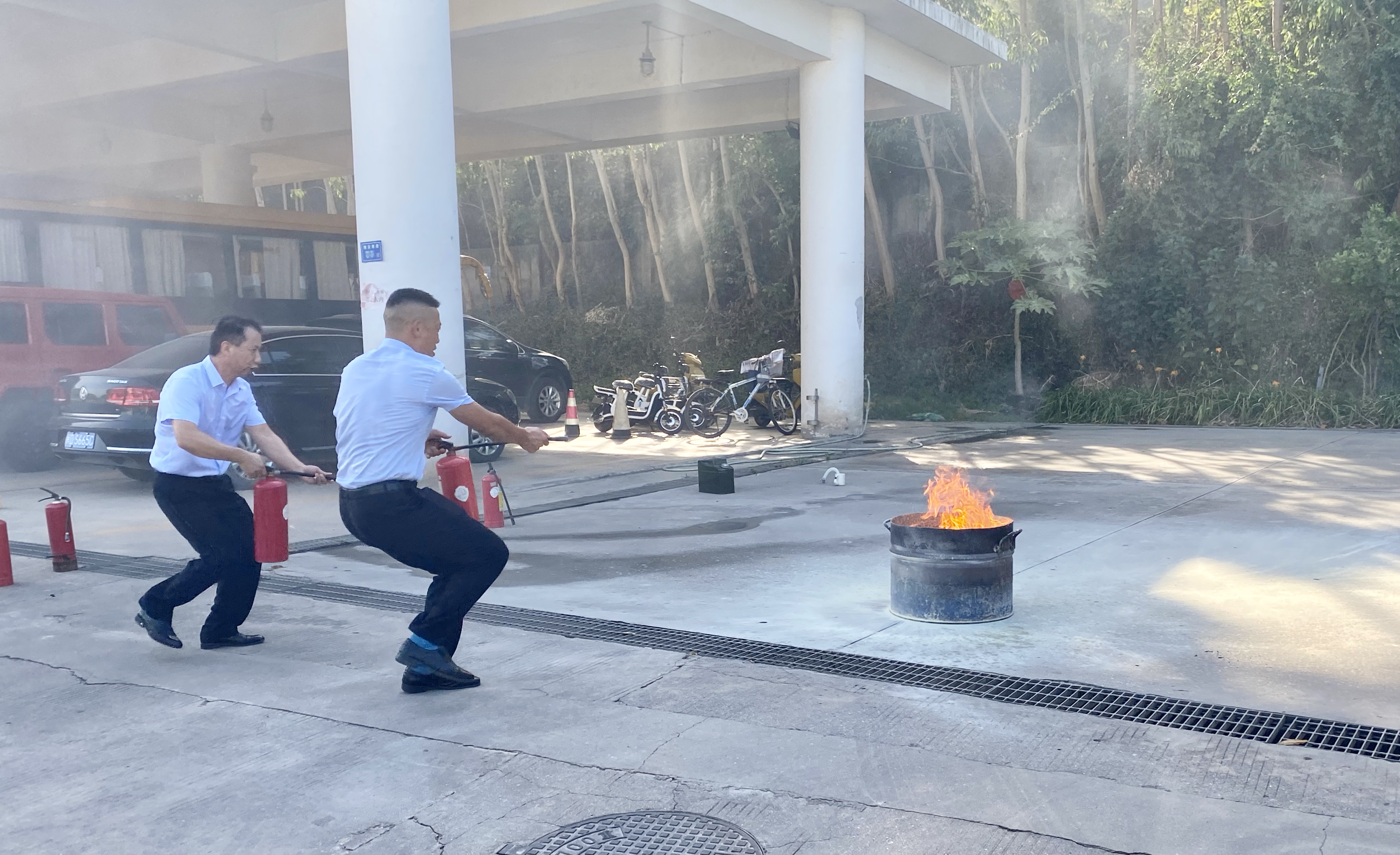 暑期工作正在有序进行。8月22日周六上午,运输中心利用周末时间,组织全体员工在翔安校区运输服务部开展消防灭火演练。中心主任李东龙从风向风速、手握姿势等进行讲解演示;现场架起火盆,两人一组相互配合,让每位员工都有上场操作的机会,本次演练使用的均是已过期的灭火器,这也是中心从细微处践行绿色节约精神的体现。集团质检部、翔安校区服务办人员参与本次演练,同时对配备的车载灭火器进行合格抽检,确保“一车两瓶”安全有效。