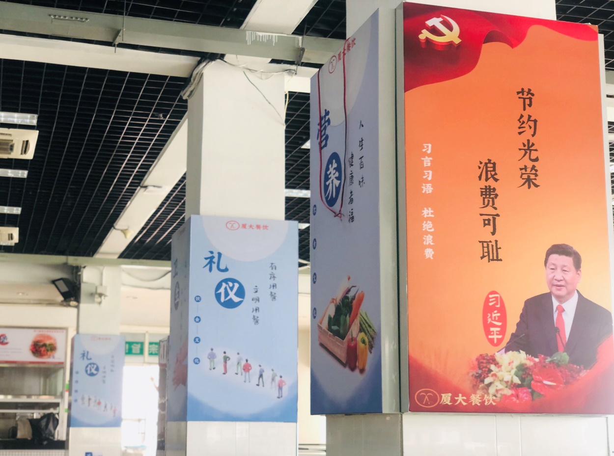 厦门城市职业学院厦大餐厅节约主题柱体广告