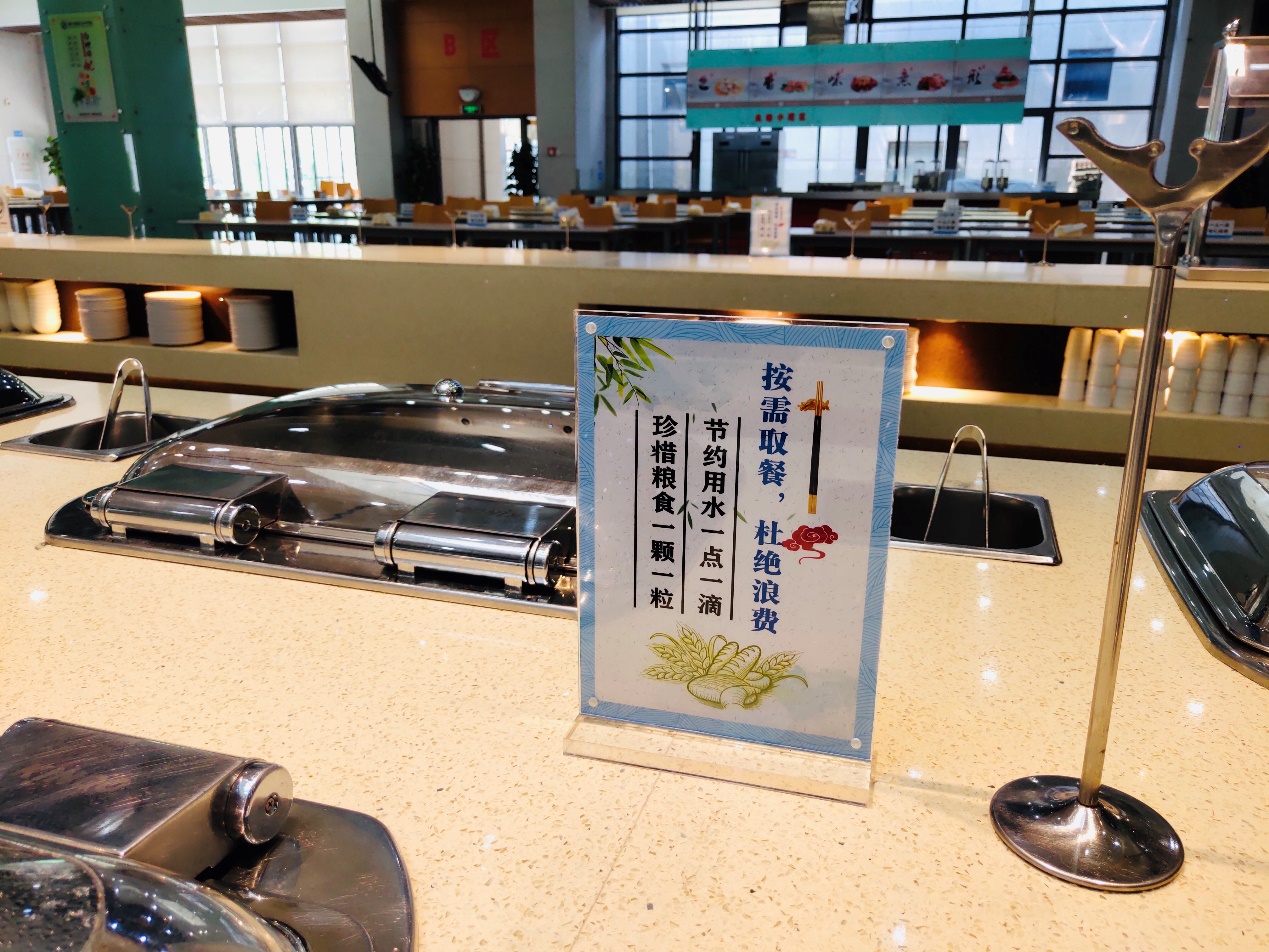 国家会计学院厦大餐厅围绕厉行节约主题设置自助餐台提示