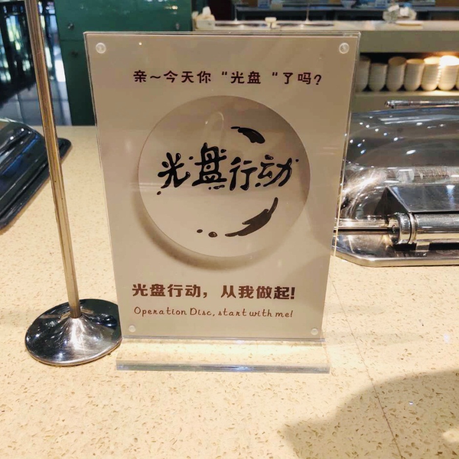 紫金矿业公司厦大餐厅自助餐台上的厉行节约广告牌