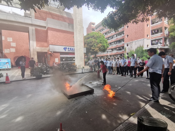 消防演练现场,孙俊逸老师为大家操作灭火示范,大家积极动手实践,在演练中学习标准化、规范化操作,切实掌握在第一时间正确、及时处理突发事件的能力。