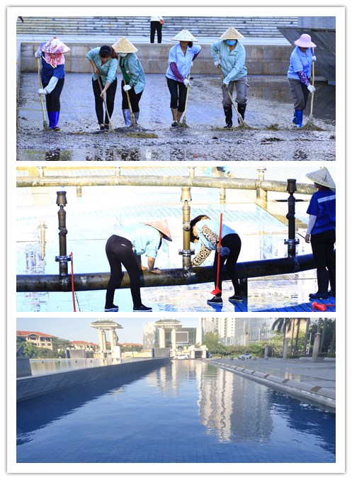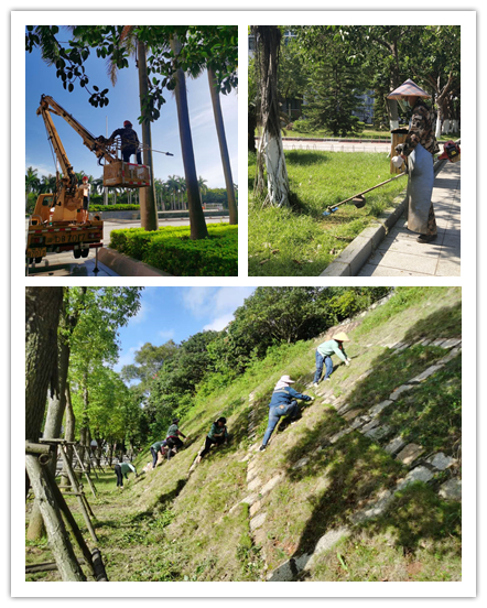 为了让毕业生在最后的校园时光中留下安全、舒适、整洁、美丽的美好回忆,漳州校区物业部道路组员工们加班加点,清洗三个校门和主干道,刷洗嘉庚广场涌泉池;公教组对开放自习室进行消毒;绿化组对校区枯枝和草坪进行修剪。骄阳似火,忙了一天的员工们不知道衣服汗湿了几遍,但看到校园环境经过自己辛勤的劳动,变得更加清新优美、绿意盎然,大家的脸上都露出了舒心的笑容。