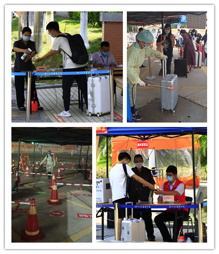 做好返校通道及行李箱消毒,为同学测温查证、手部消毒、办理入住登记