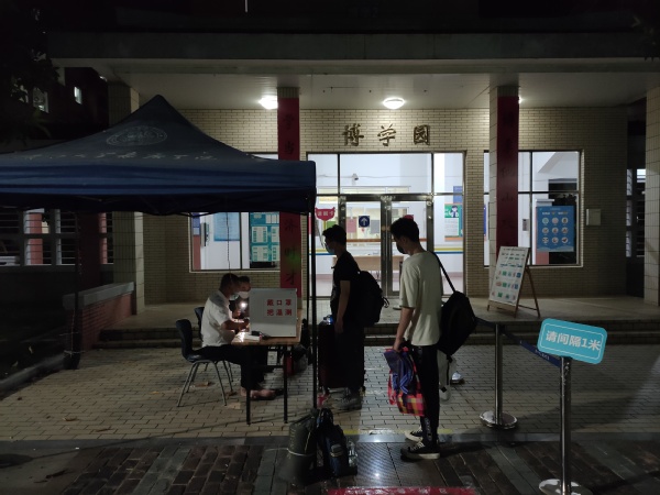 南光园区保洁员和安防员在巡查时及时发现并制止返校毕业生在宿舍内燃烧纸张