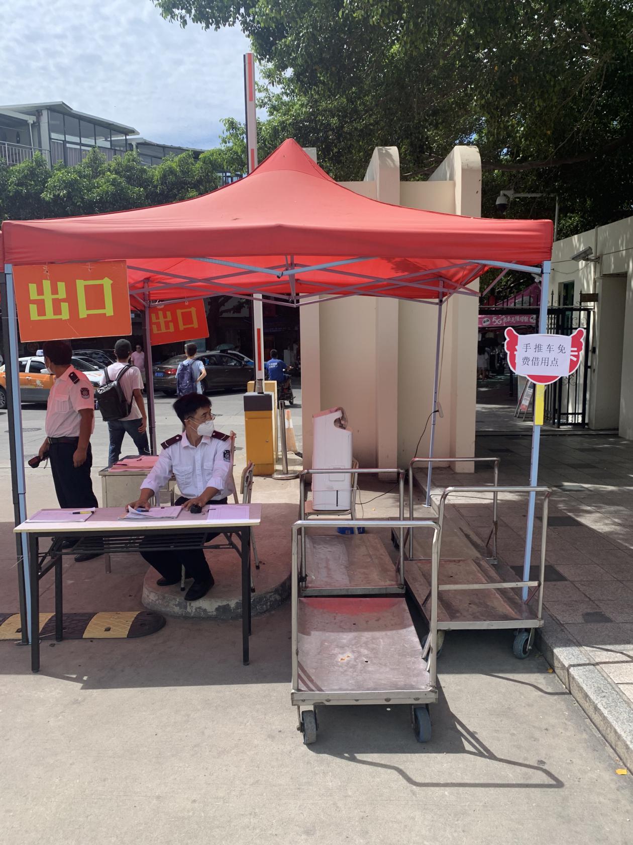 在毕业生楼栋芙蓉3设立党员服务岗,提供退宿咨询、行李搬运等服务