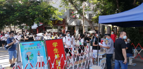 “考题一”:疫情期间,考场人员聚集,如何建立考生的安全感?心有使命,行有责任。作为厦门最大高考考点--福建省厦门双十中学枋湖校区的维序员们24小时不间断地严格做好门岗测温的同时,还专门增加了专用防疫特殊通道,用于考试入场时健康检测异常或考试过程中身体状况异常的考生单独通过该通道直接进入备用考场参加考试,并在备用考场警戒线内增加五个执勤点严密管控,确保一千多名考生平安考试。