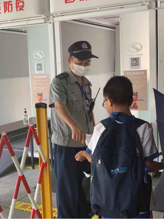 福建省厦门双十中学镇海校区项目维序员为中考考生测量体温