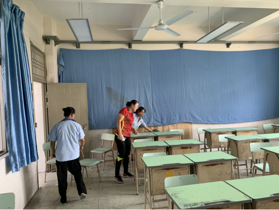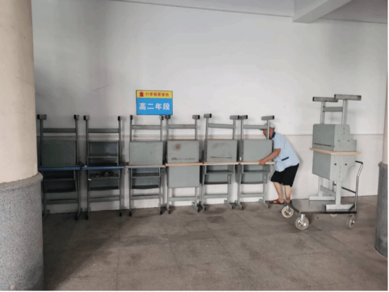 福建省厦门双十中学枋湖校区项目员工搬运课桌到考场