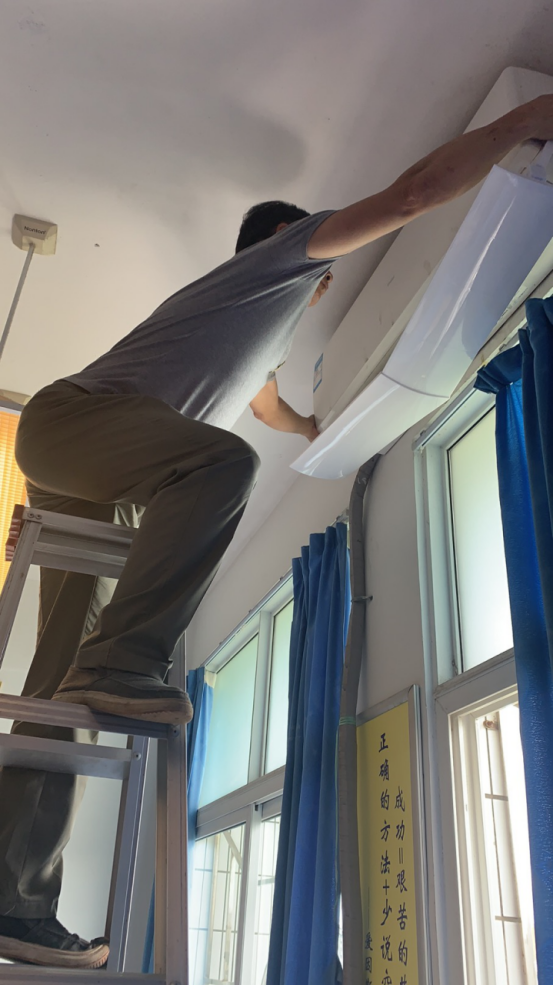 厦门大学附属科技中学项目工程人员安装挡风板,提前开启考场空调