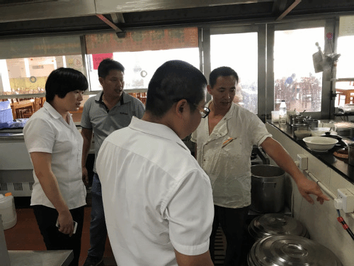 检查过程中,检查人员发现小吃城某些商家存在私拉电线以及违规用电的现象,现场对商家进行了严肃批评教育,告知违规操作可能导致的严重后果,并立即下发整改通知单,要求小吃城商家结合各自的经营特点认真思考,做好水电整改方案,利用暑期停业期间做好整改工作。此外,检查人员还要求商家尽量使用大品牌、质量有保证的电气设备,停业前要将卫生清理到位,特别是煤气管道外表面的油污要清理干净,餐厅将对煤气管道进行刷漆保养作业。