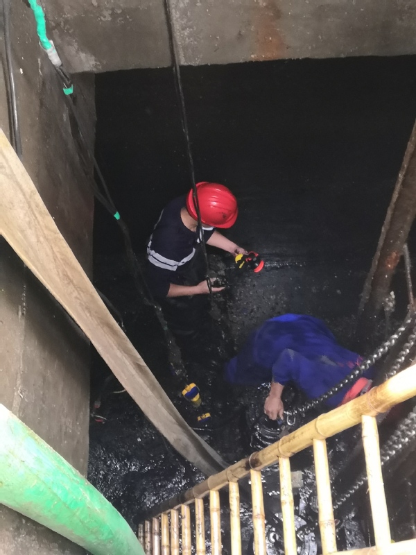 “窖井里弯曲的背脊、安全帽下滚落的汗水、设备上糙厚的大手忙碌不停……”污水次泵站抽水机位于地下4米的污水井内,窖井内阴暗潮湿、满是污泥、恶臭扑鼻,水电维修工进出窨井,浑身污泥,挥汗如雨,潜心排查,清污检修……下午16:00多,历时6个多小时,终于完成清污检修,抽水机恢复正常运转。