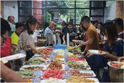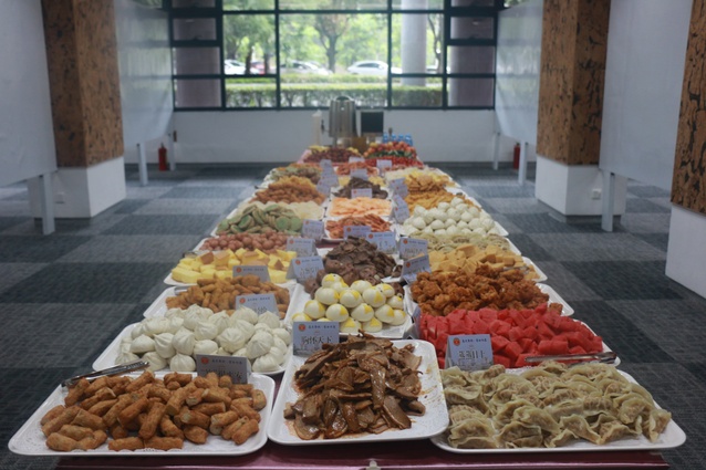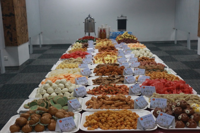 经统计,冷餐会两天共接待来宾近两万人次,勤业、芙蓉、海滨、南光等餐厅供应菜肴及水果达19种,共制作蒸饺16684个、绿茶饼16684个、烤肠16684个、水晶饺11678个、柠檬蛋糕8342块、发糕8342块、翅根1802斤、海胆丸8342个等,水果约6674斤,花样繁多,备受好评。
