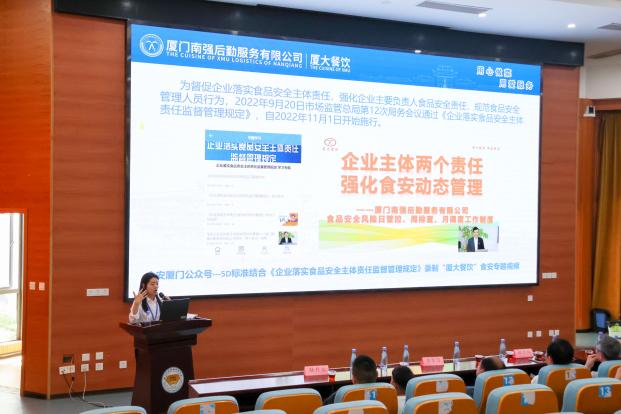 参观交流期间,公司总经理助理董晓岑以厦门大学餐饮“5D”现场管理体系为主题进行介绍,公司总经理助理黄进春以餐厅人员管理为主题进行了深入交流和经验分享。河北省团餐与饮食行业协会秘书长郝杰成高度评价了我司餐饮管理工作所取得的成绩,并表示希望通过区域互动,不断加强行业交流,取长补短,共同促进餐饮行业高质量发展。