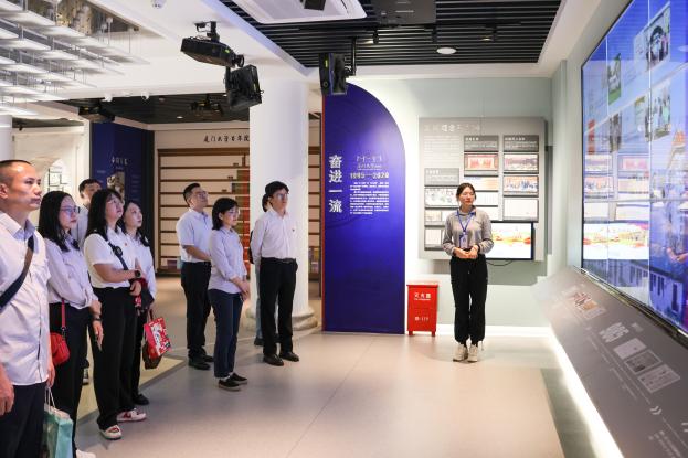 当天,三个党支部组织28名党员于群贤楼参观厦门大学校史馆。在这里,党员们认真听取了“厦大初创” “长汀岁月” “人民新厦大” “南强春天” “奋进一流”五大模块的介绍,回顾了厦门大学百年来自强不息、恢弘壮阔的发展历程,进一步深入了解了厦门大学百年来在各方面取得的成就。