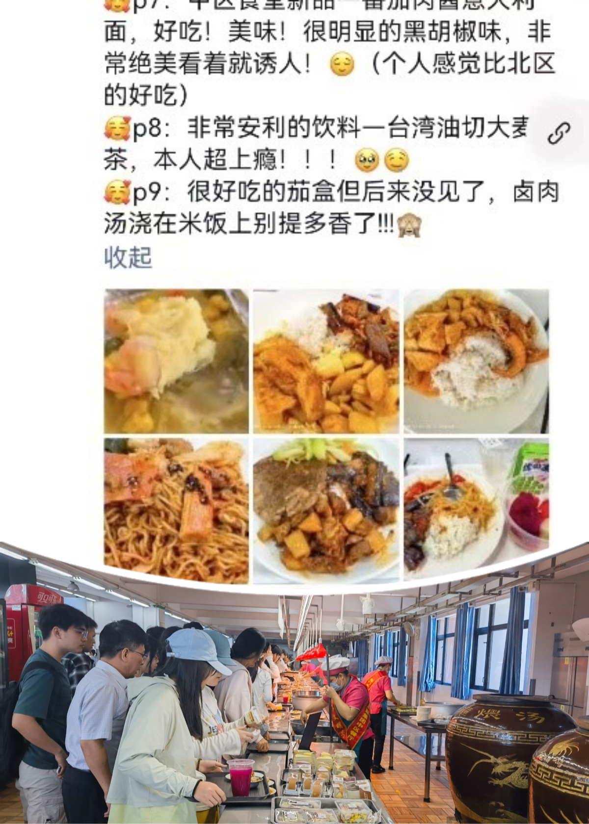 走进美食周活动现场,一道道色香味俱佳的美食散发着诱人的香气,让人不禁“食”指大动,垂涎欲滴。从精致的小吃到丰盛的大餐,每一道菜都承载着独特的风味和文化底蕴。金黄酥脆的锅包肉、麻辣鲜香的毛血旺、鲜嫩多汁的烤鸭、汤头浓郁的野生小鲍鱼汤、精致回甘的甜品……琳琅满目的菜品让师生眼花缭乱。特色菜品经常不到12点就售罄,更有部分师生感叹“根本挤不进去”……
