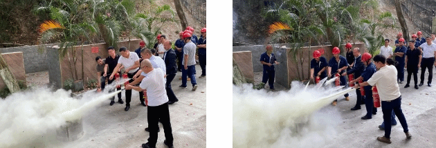 本次活动分为两部分,全员先通过集中观看消防教育视频学习火灾疏散、电气起火应急处置、电动车使用等消防安全知识,随后实地开展消防灭火应急处置演练,进一步提高员工消防安全意识,强化员工消防安全的处置能力,为各中心后勤服务安全保驾护航。