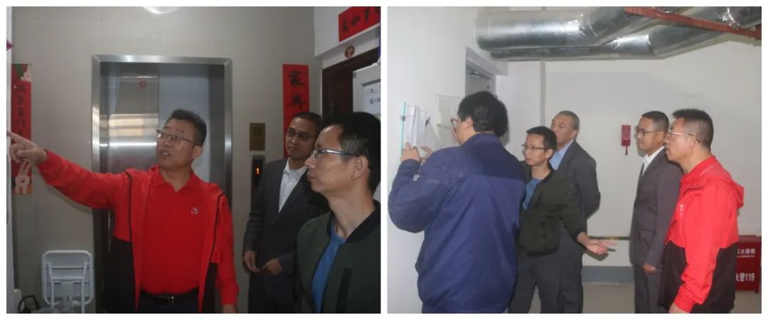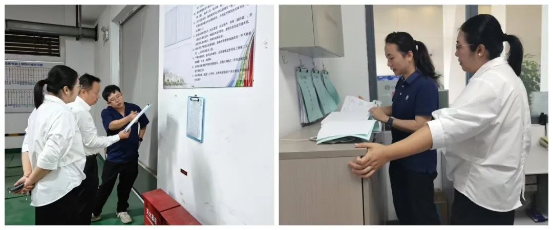 ▲南强城服公司副总经理吴雯霞和品管部黄惠婷进行翔安校区物业部现场安全检查。