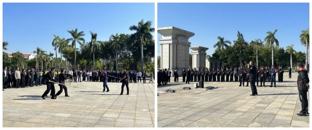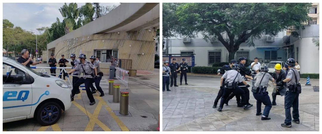 ▲厦门大学翔安校区物业部开展校园防袭击演练。