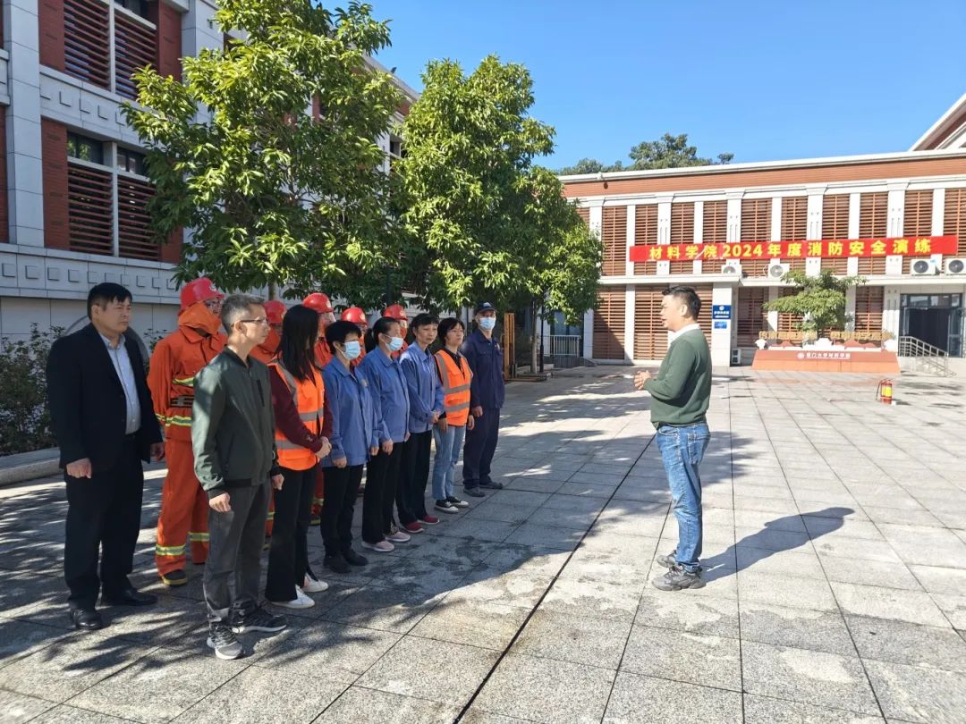 ▲南强城服总经理薛荣城、副总经理林振勇到演练现场,指导项目开展消防安全活动。