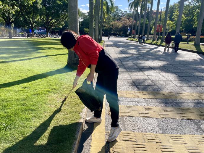 为切实发挥党员志愿者示范带动作用,11月25日至29日期间,公寓党支部组织党员开展志愿活动,党员志愿者每日轮流到校园核心区域巡查并拾捡烟头及白色垃圾,用无声的行动传递文明力量,影响和号召学校师生共同维护美丽的校园环境,助力文明城市创建。