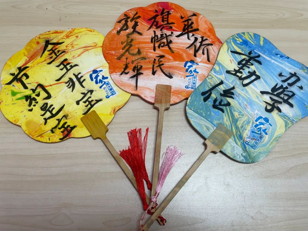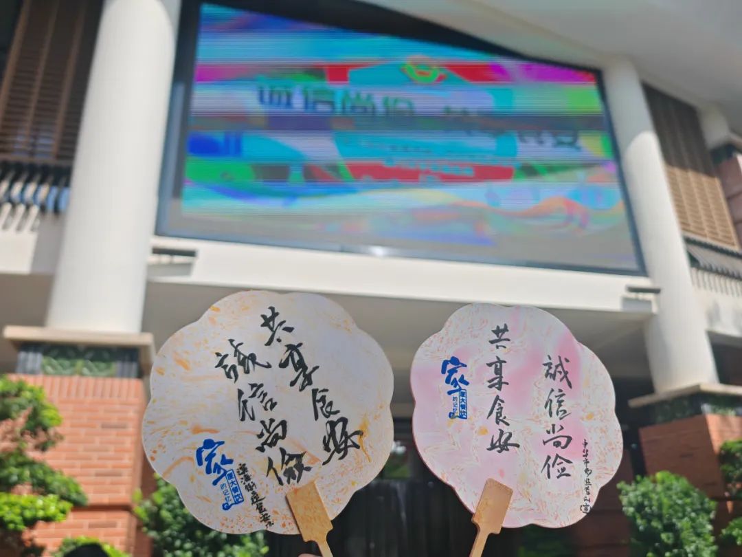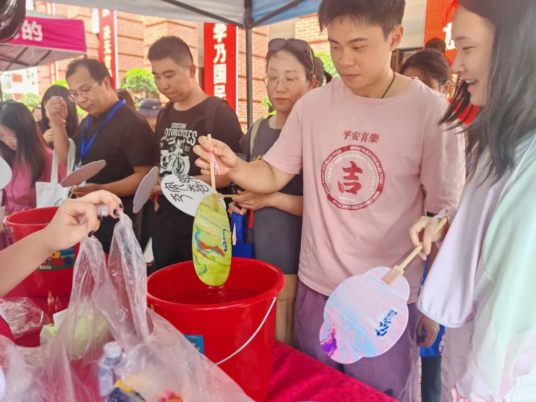 互动环节邀请师生们体验漆画制作。以“食安”和“节约”为主题的手工扇子缓缓浸入漆画颜料,在动手制作的乐趣中,培养食品安全意识与节俭美德。