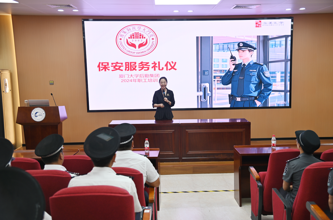 为进一步推动落实质量提升年工作,提高安防队伍整体素质和能力,9月19、20日,学生公寓与环境服务中心组织开设了以“提升安全防范能力,助力平安校园建设”为主题的崔维星平安校园建设专项培训提升班,并精心设置了服务礼仪、防恐防暴、队列训练、消防安全、应急担架等培训课程,邀请专业讲师和教官进行培训。后勤集团副总经理李启忠到场指导,思明校区校门和学生宿舍50余名安防员参加本次培训。