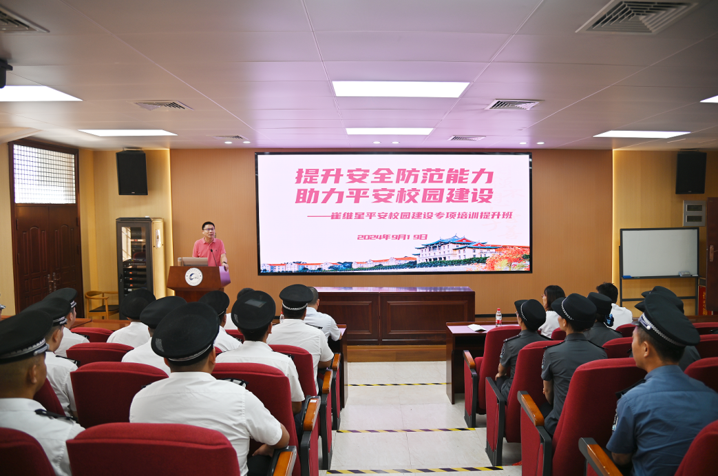 李启忠作开班动员。他强调,组织这次培训班是加强校园安全工作的必然要求和现实需要,也寄托了师生、校友和社会人士的希望,希望参训安防员通过培训掌握更规范的操作技能、更有效的应急处置方法,成为校园安全的坚强守护者。他要求,一是提高站位,切实增强责任感和使命感;二是立足服务,着力打造一支一流安防队伍;三是端正态度,有效提升专业素养和服务技能。