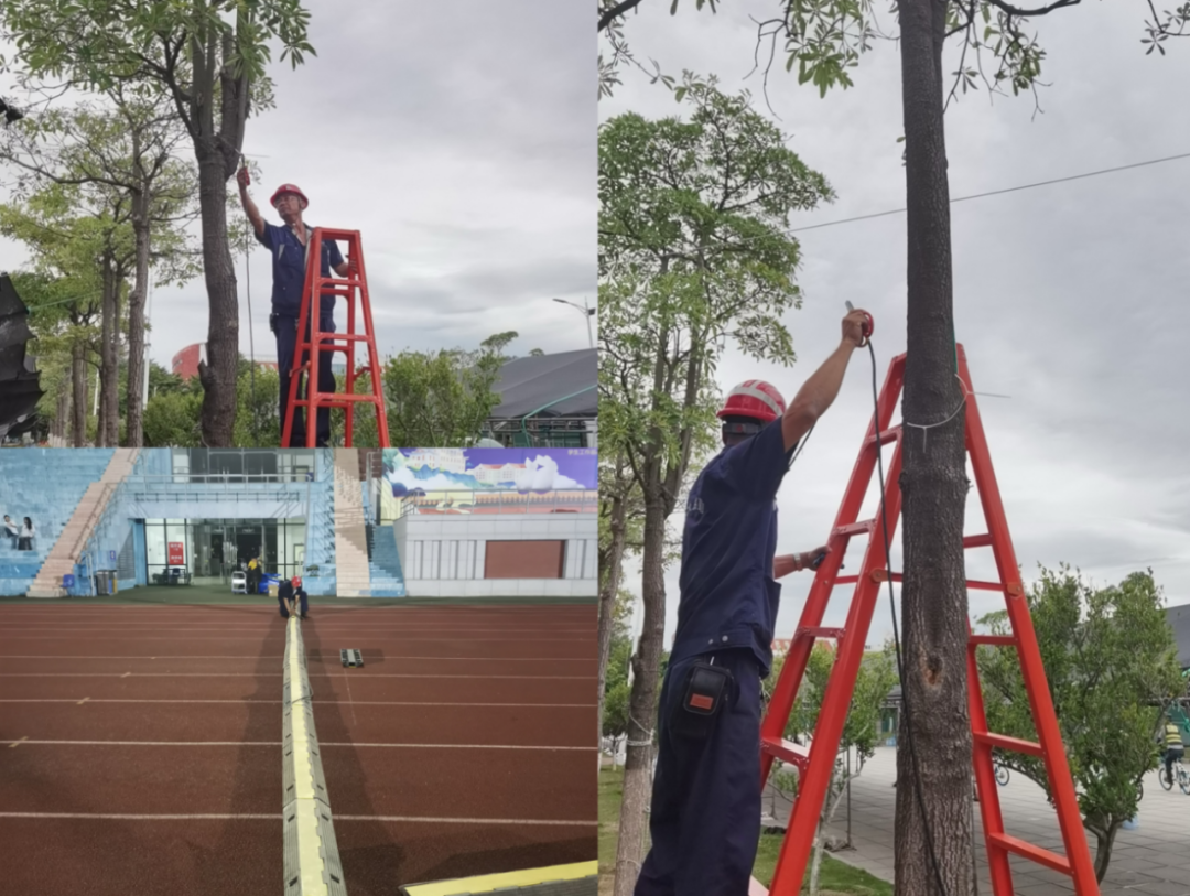 水电管理部加强军训场地照明巡查,做好军训期间场地照明保障工作,确保灯光明亮,训练无阻,并在用水高峰期增开泵房水泵,满足参训人员及校区的用水需求。
