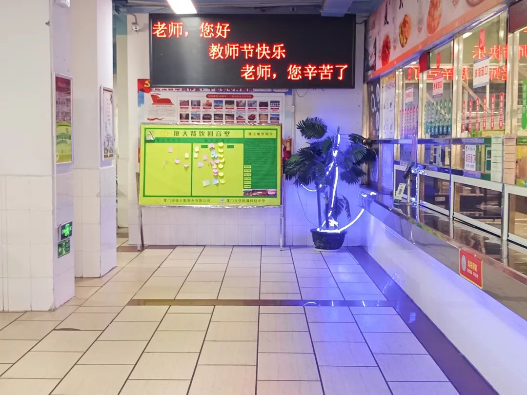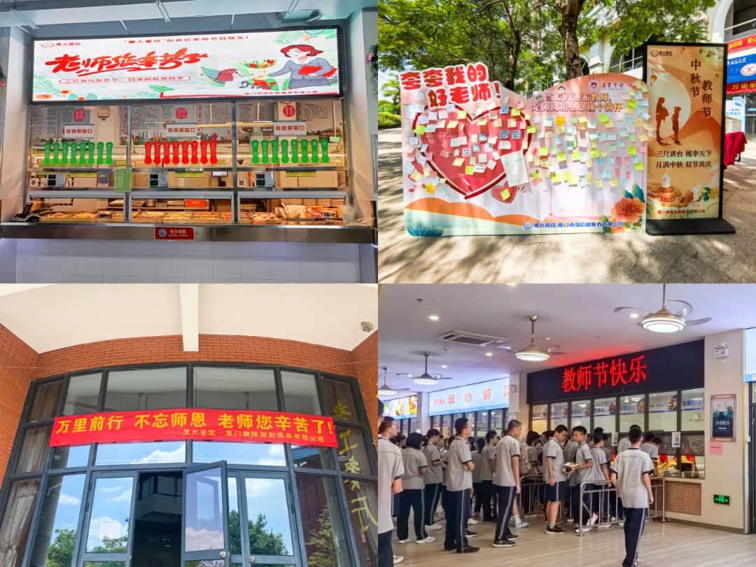 9月10日,适逢第40个教师节,厦门南强后勤服务有限公司的“厦大餐饮”人为弘扬尊师重教的传统,推动劳动教育、感恩教育,公司所服务的学校类餐厅积极营造节日氛围,通过不同形式的布置和互动,为老师们献上最诚挚的敬意与祝福,得到了广大教师职工的一致好评!