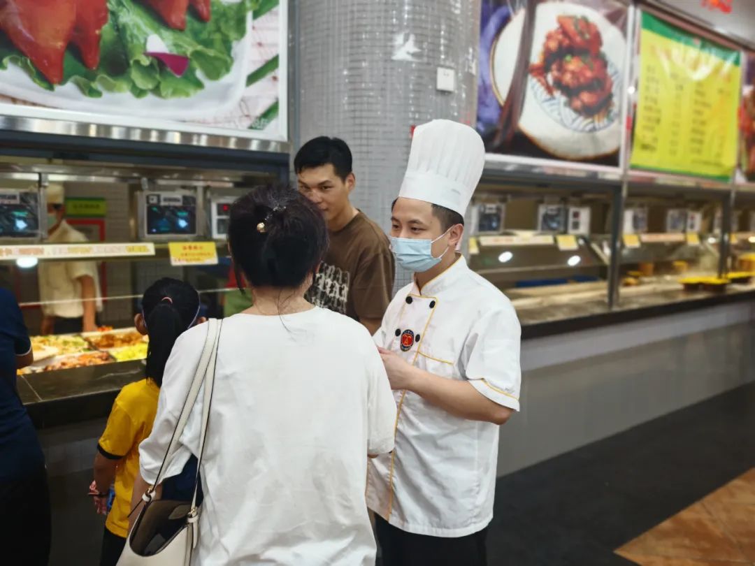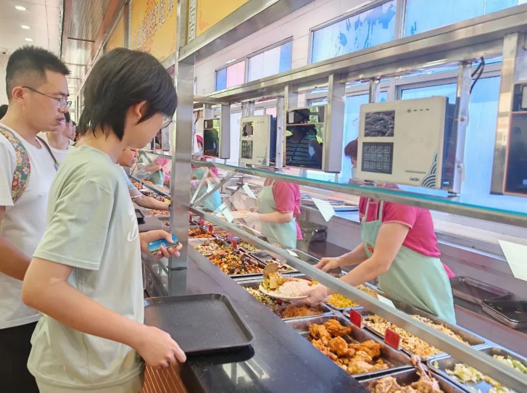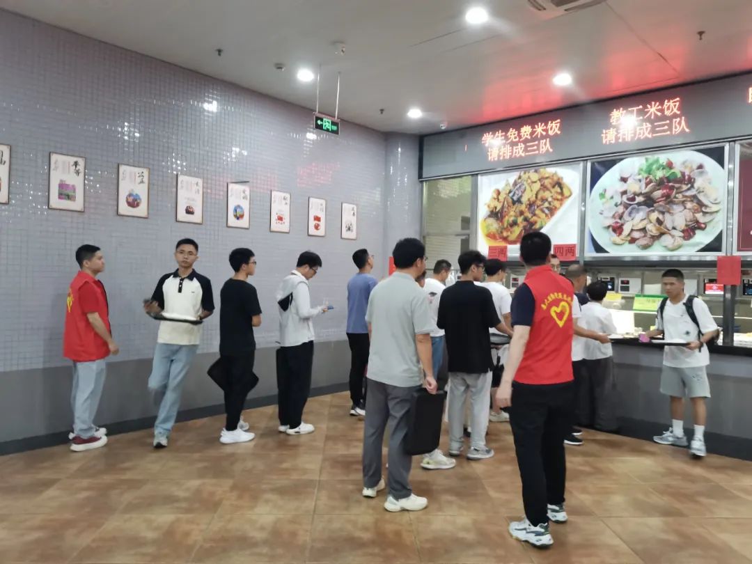 新生及家属陆续到达,餐厅特地延长供餐时间,中午不间断提供餐饮服务,以便新生及家属随时享用热食,及时补充能量,感受到家一般的温暖。