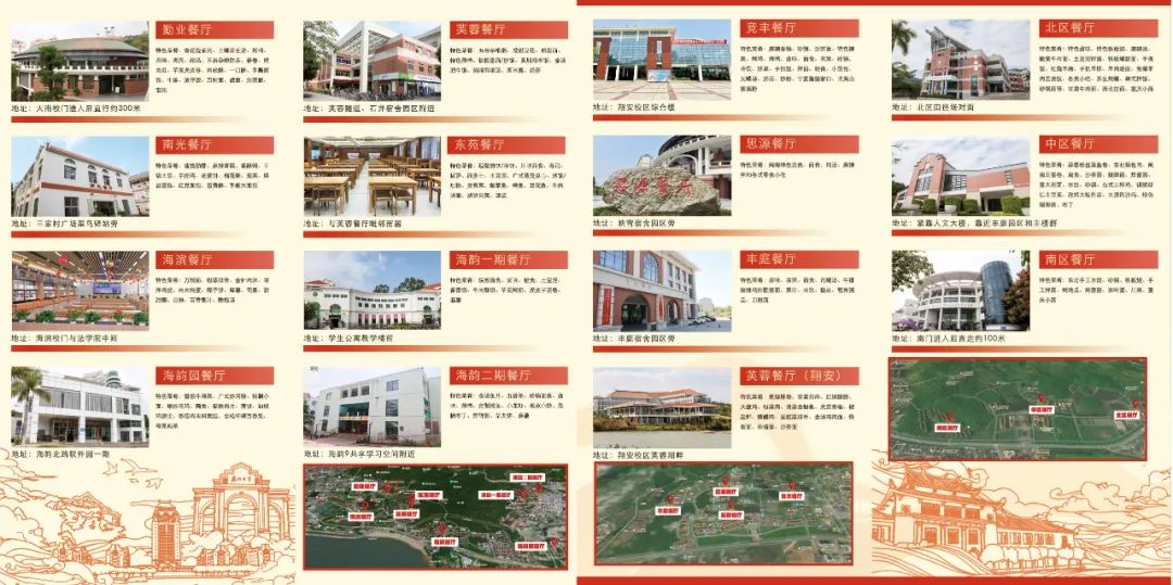 为帮助学子和家长迅速定位餐厅和心仪美食,饮食服务中心贴心制作了美食指南,指引大家轻松找到适合自己口味的餐厅。