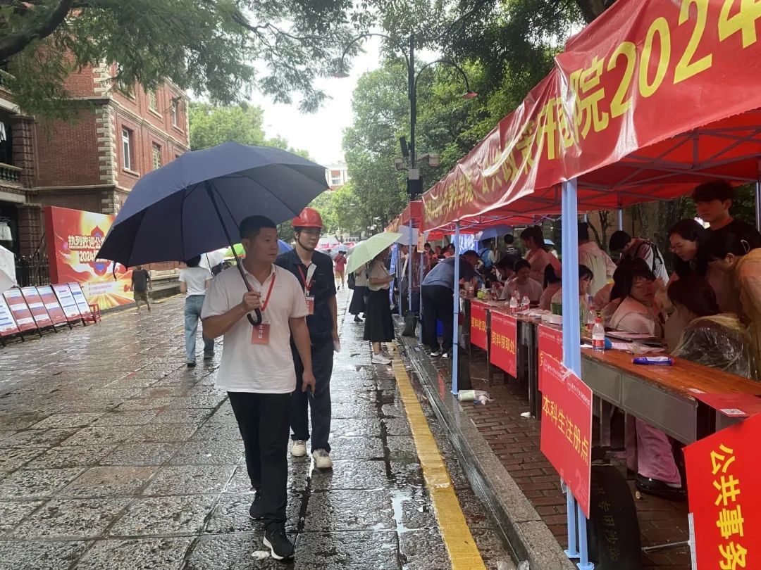 ▲迎新现场天气变化,多次加强安全巡查,提醒师生用电安全注意事项,排除用电安全隐患。