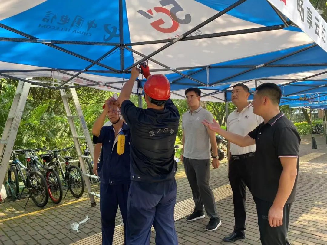 迎新前,集团副总经理王裕民带队质监部至思明区迎新点查看水电保障工作开展情况,现场强调要做好临时电源的安全防护工作。