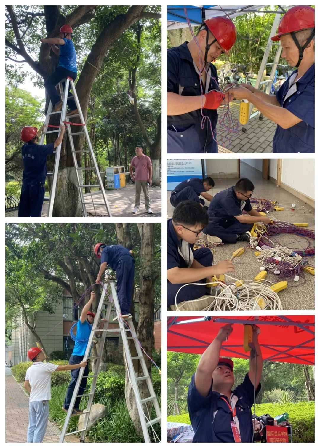 ▲思明校区三家村迎新点布设临时电源及照明设备。