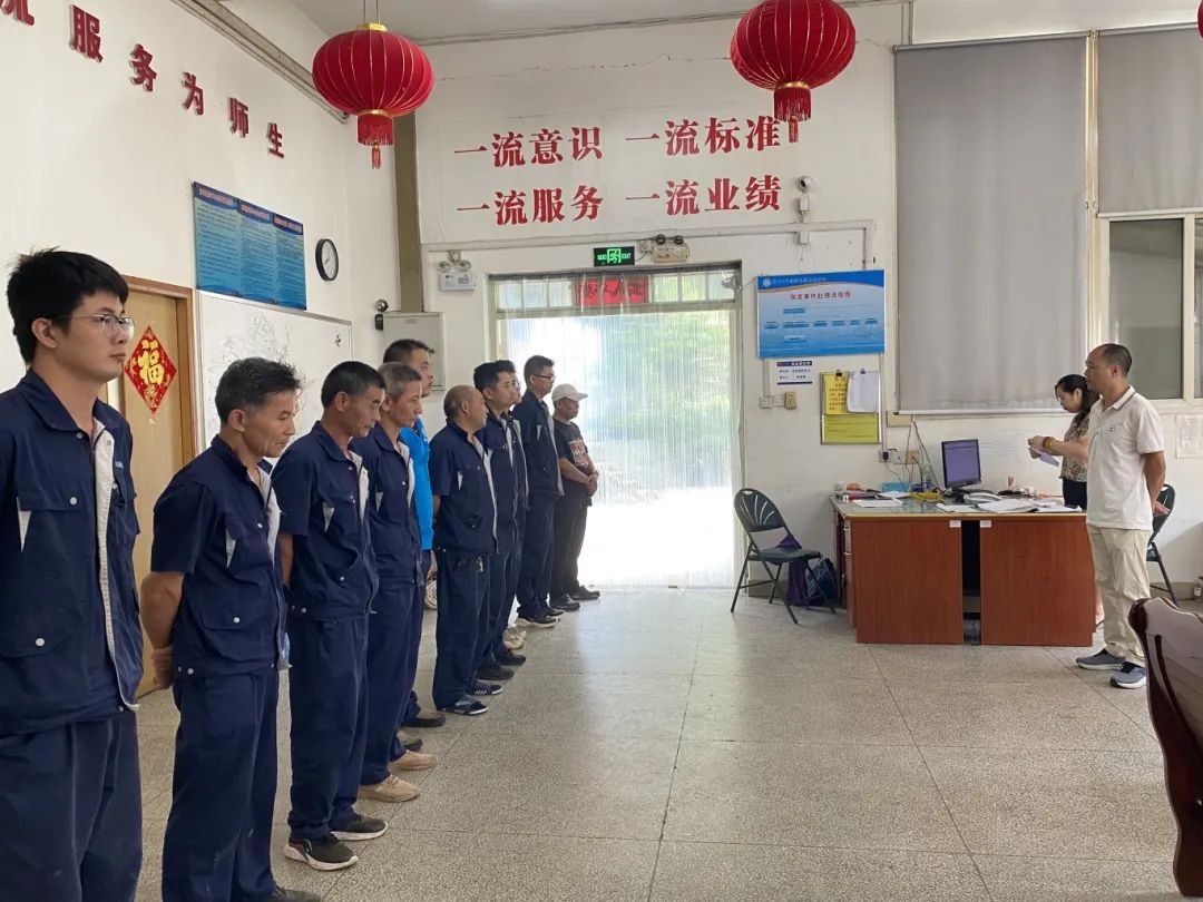 ▲各部门“岗前一刻”召开迎新工作组织动员会,传达学校、集团迎新工作要求,科学安排迎新水电保障工作。