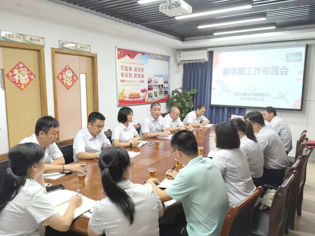8月25日下午,学生公寓与环境服务中心组织召开新学期工作布置会。会议总结梳理了暑期工作,并对新学期重点工作进行了布置,确保新学期各项服务保障工作落实落细、有序开展。