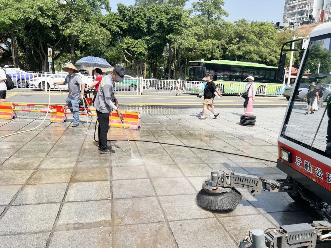 夏季,校园里的绿篱、草坪等进入了快速生长期,绿化保洁部组织员工修剪树木、绿篱,清理草坪、防治病虫害,不仅提升了绿化景观质量,还促进了苗木的生长;组织清洗核心区主干道,清理公共区域的雨水井、排洪沟,打造整洁、优美的校园环境。