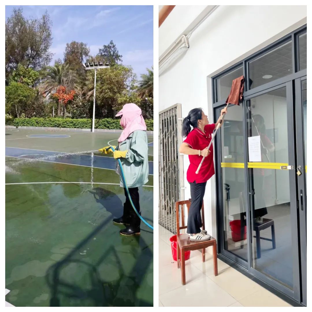 公共教学服务部认真做好公共教学楼、运动场馆卫生大扫除、设施检查报修工作,确保新学期各项教学工作顺利开展。