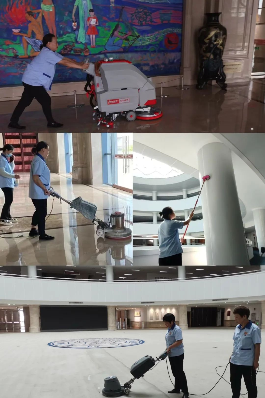 公司高度重视环境卫生工作,实施全方位、深层次的清洁计划。从日常保洁到深度清洁,每一个角落都焕发出新的生机。并针对图书馆不同区域的地毯,进行了细致的清洗与保养工作。如今,主楼群内窗明几净,地面光洁如镜,为师生营造了一个清新雅致的学习生活环境。