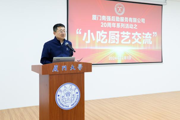 12月1日上午,厦门南强后勤服务有限公司20周年系列活动之“小吃厨艺交流”在厦门大学海韵学生公寓成功举办,来自39家餐厅的44名厨师积极参与本次活动比拼。厦门大学后勤集团总经理杨旸、副总经理沈雄晖到场指导,公司班子成员也全程为选手们加油鼓劲。