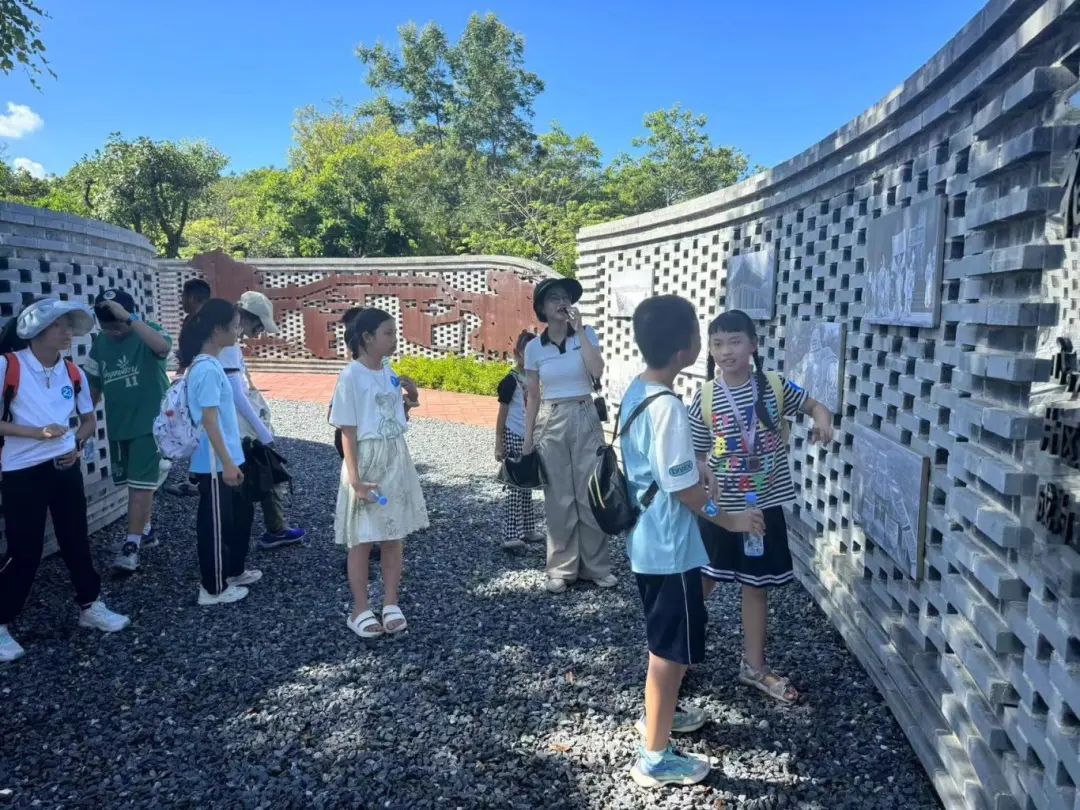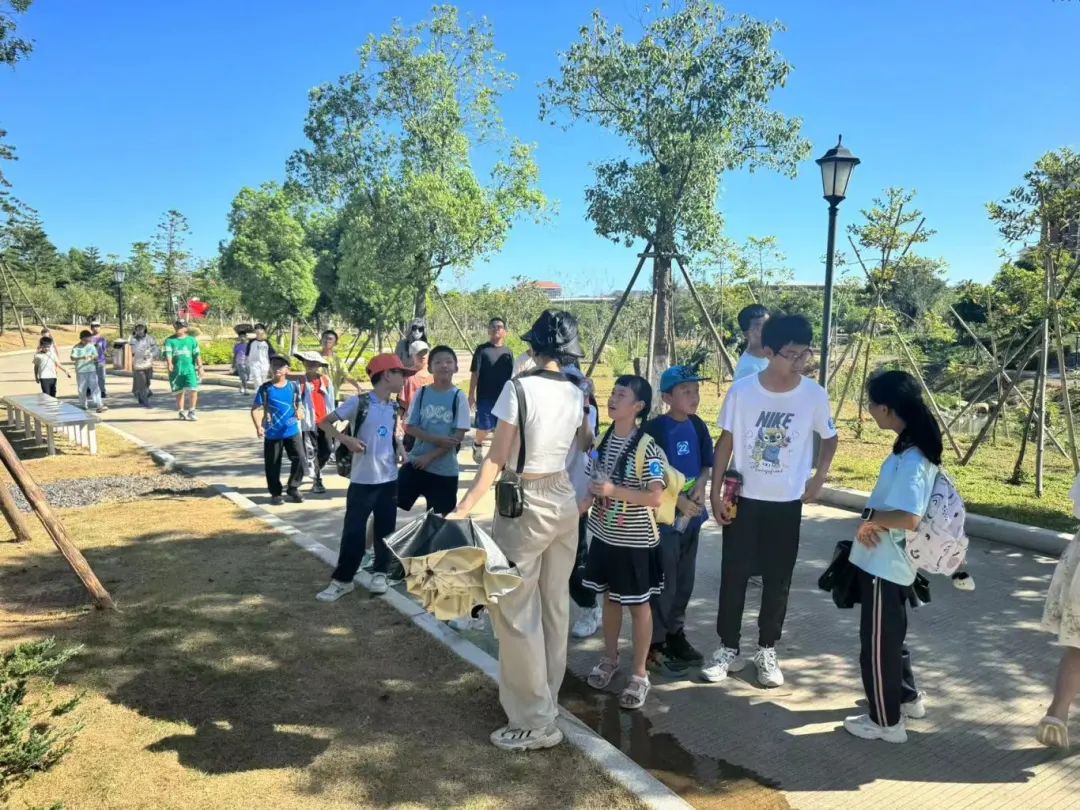 通过参观文化景墙、景观小品,孩子们不仅加深了对八闽文化的认识,还学习了八闽园内的特色植物,包括各地市树市花及珍稀树种,增强了他们热爱自然、保护环境的意识。孩子们还游览了生态实践教学基地,包括药学院药园、生科学院和环生学院的试验田、耐盐碱地红树林实验基地等,每一处都充满了科学的奥秘与自然的魅力,培养孩子们探索自然、享受自然的兴趣。