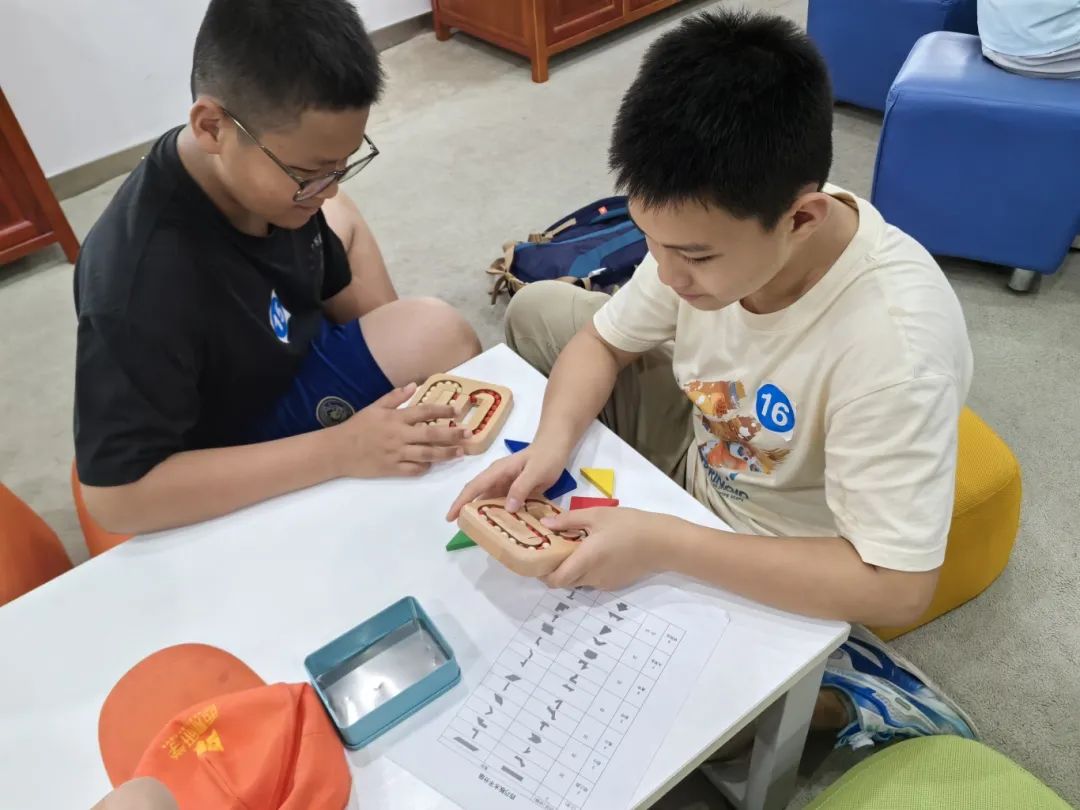 孩子们在数学与智力玩具空间体验丰富的智力玩具,享受“脑洞大开”的乐趣,活动实现了寓教于乐的效果,带领孩子们启迪数学意识、训练数学思维。