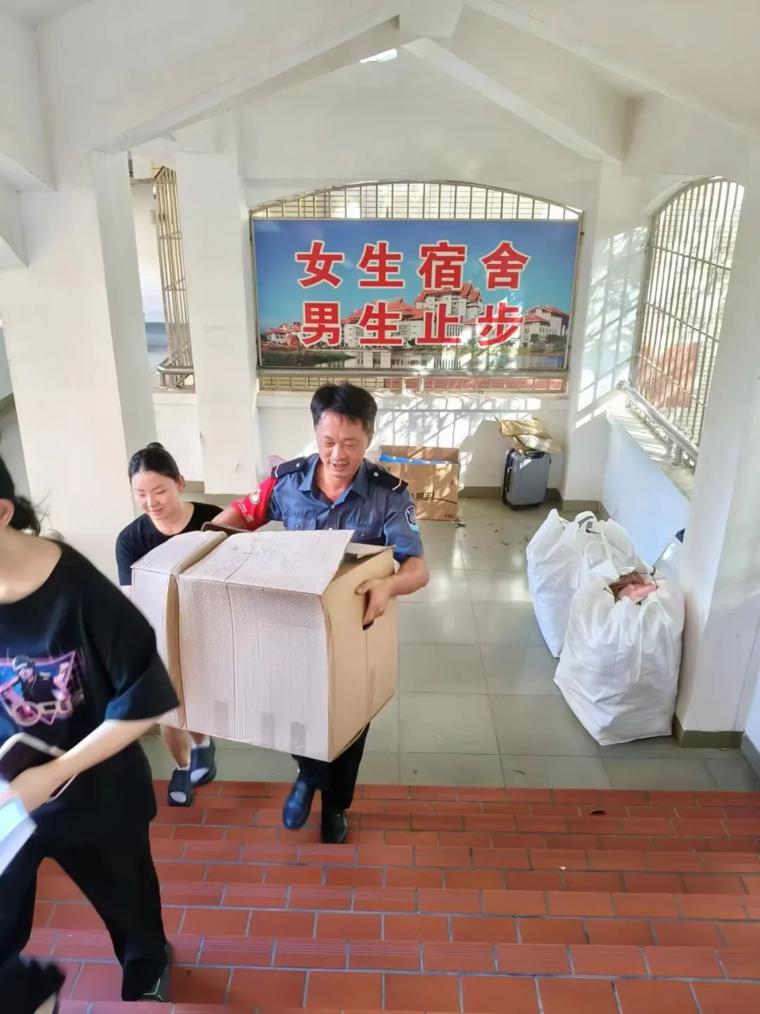 7月6日至7日,是漳州校区毕业退宿高峰时段,物业部学生宿舍安防部加强宿舍门禁管理,对进出各片区、楼栋的外来人员、大件及贵重行李进行严格查证登记,并加大对毕业生园区楼道废弃物的安全隐患巡查,安防巡逻岗协助退宿各点维持秩序、帮助同学初步审查自查表,同时为有需要的毕业同学提供义务服务,协助大件行李搬运,确保毕业生离校退宿工作有序进行。