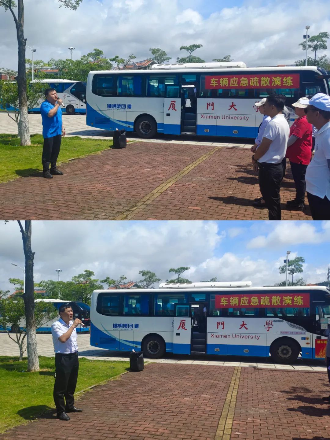 翔安校区保卫办主任陶元升观摩后指出,校园安全是教育科研工作的基石,通行安全更是构建安全校园的重要一环,此次运输服务中心的车辆应急疏散演练准备充分、组织有序、成效显著。他强调在实际生活中,遇到车辆起火逃生时,我们要利用身边一切可利用的资源,如毛巾、衣物、座椅头套等遮掩口鼻,俯身弯腰前行,以减少烟气的吸入。